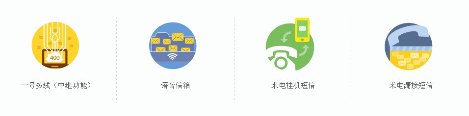 400电话绝非仅仅是个号码,我们提供20项增值服务功能,真正满足企业通信与运营管理实际需求,为企业带来更多业务发展可能。总结企业的实际问题,功能可分为以下六大类: